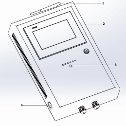 凈化系統(tǒng)組成部件:1、改進后433M無線通訊模塊;2、把手、3、電源插口;4、空氣泵;5、電源模塊;6、吸附劑氣室;7、萬向輪;8、排水口;9、氣泡石;10、316不銹鋼內(nèi)膽;11、排氣口;12、注水口